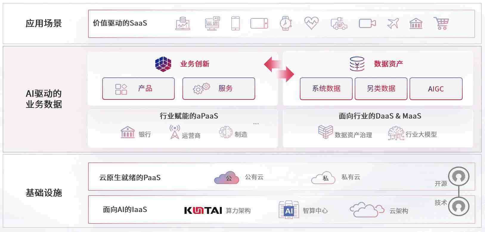 数字时代,,,,围绕企业数字化转型的关键要素,,,z6com尊龙数码开创性的提出数云融合战略和技术体系框架,,着力在云原生、、、、数字原生、、、AI原生和信创产业上架构产品和服务能力,,,,为处在不同数字化转型阶段的快消零售、、、、汽车、、、金融、、、、医疗、、政企、、、教育、、、运营商等行业客户提供泛在的敏捷IT能力和融合的数据驱动能力,,,构建跨界融合创新的数字业务场景和新业务模式,,助力企业级客户建立面向未来的核心能力和竞争优势,,,全面推动社会的数字化、、、智能化转型升级。。。。
